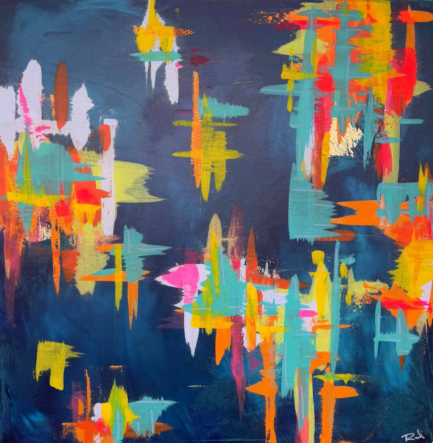 Canadian artist Katie Rodgers creates dynamic acrylic paintings that blend abstract and representational styles. Featured in AQ Volume VI, her work captures the mood and memory of landscapes through bold colour, expressive texture, and imaginative interpretations of place.