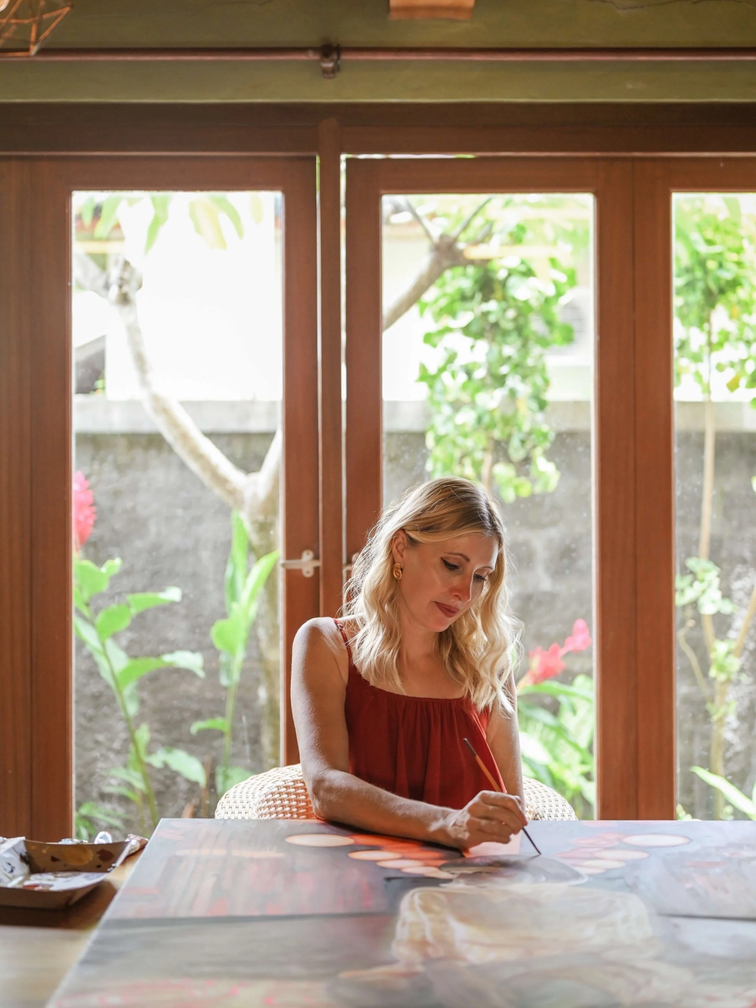 Now living and working in Bali, she balances her teaching career with a deepening dedication to her art practice, with the long-term aim and dream of transitioning into a full-time artist. Her work continues to evolve as an ongoing dialogue between memory, identity, and the shifting landscapes of modern existence.