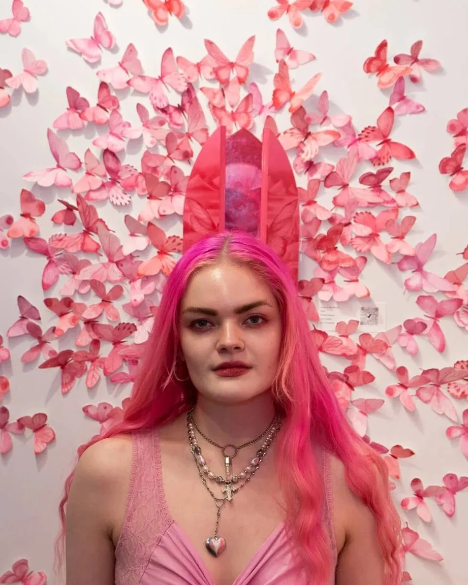 My paintings focus on the duality of womanhood that I have experienced, exploring the desire to embody the power and sexuality that exist alongside my interest in beauty, softness, and “girly” traits, acknowledging that one does not detract from the other.