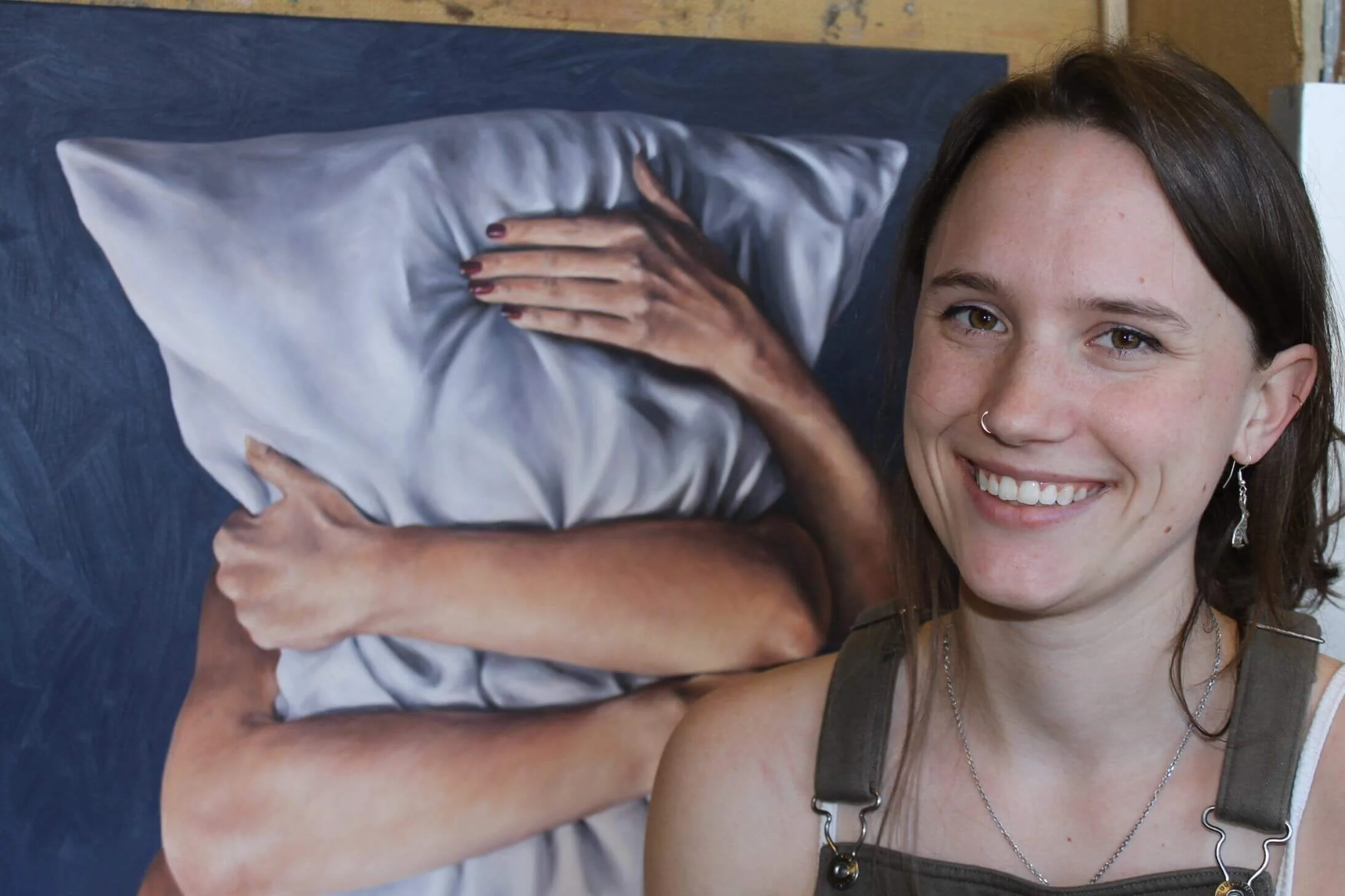 Greer Wilkins, featured in AQ Volume VI, is an oil painter born and raised in Nashville, TN, known for her realism and often unsettling compositions. Greer received a Bachelor of Fine Arts from Middle Tennessee State University in 2024 and subsequently moved to Maine to continue her career. Greer's painting style thrives on contrast, precision, and unexpected harmony. She is interested in exploring the unsettling undercurrents of humanity and reality, encouraging viewers to search for brushstrokes in her realism and to confront paintings up close.