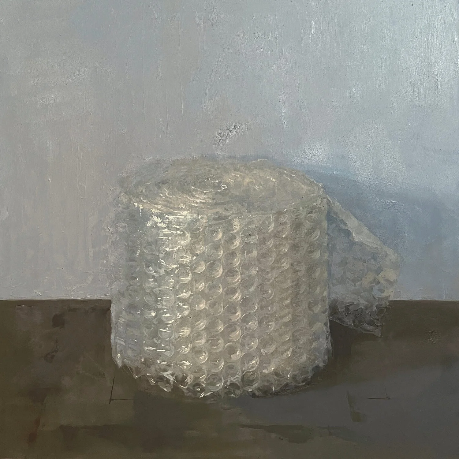 The thing I love about still lifes is the way that objects can become metaphors. All of my work starts from a deeply personal place; I hope that the images I choose and the manner in which I paint them evoke either a story or an emotion that can transcend the personal to become more universally familiar. I have always sought the quiet and found comfort in solitude; I like to say that I make quiet paintings in a noisy world. My current work is a series of single-object portraits of packing materials and other containers. I’ve been thinking recently about the things we use to fill empty space – both the literal and the metaphorical – and I’m interested in telling stories about the duality of absence and presence. Loss, memory, and queer joy are some of the current threads that run through my practice.