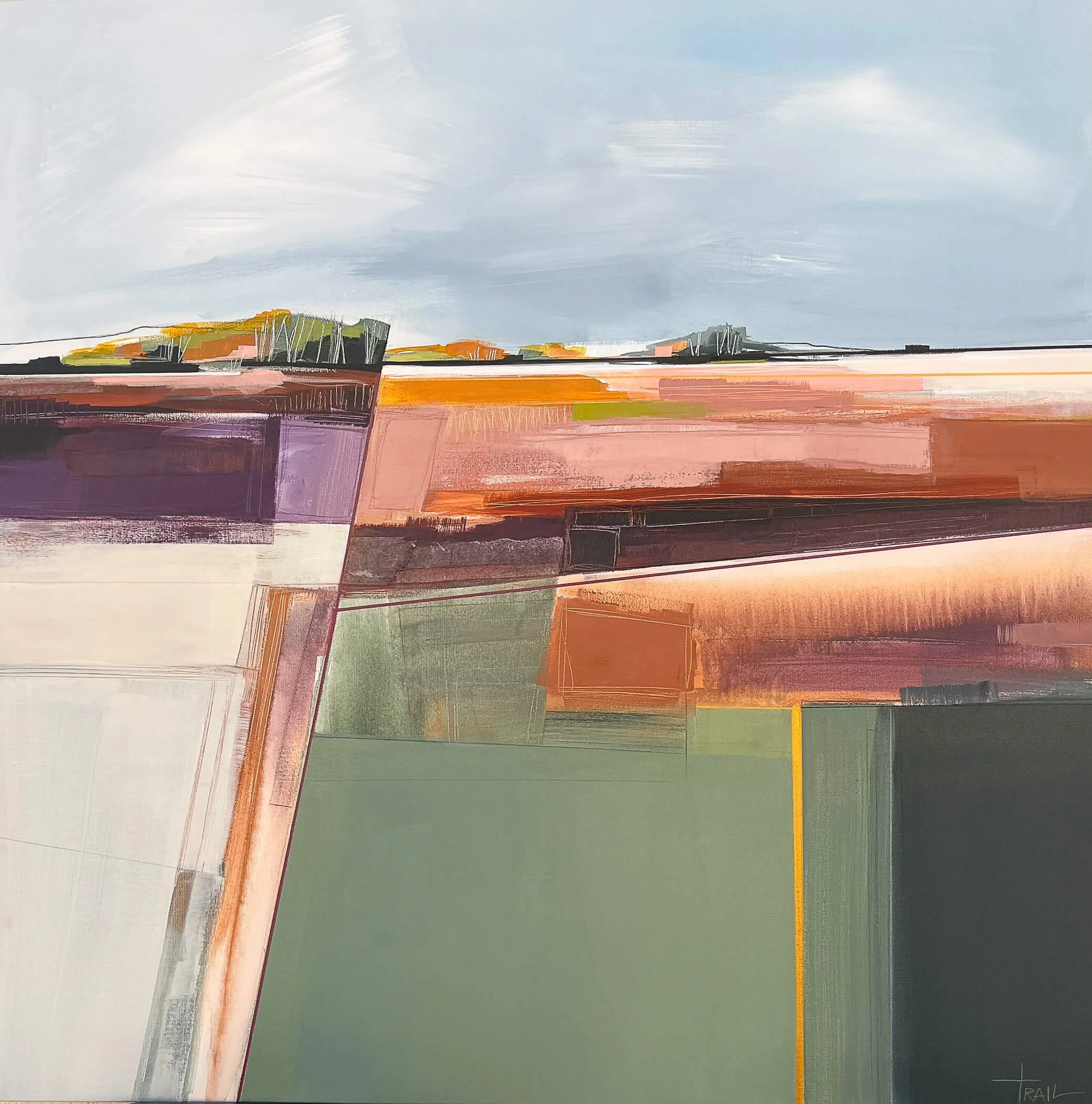 Boise-based artist Pamela Trail brings a graphic designer’s eye to her vivid acrylic and pencil works that blur abstraction and realism. In this AQ Volume VI feature, she reflects on reconnecting with creativity in midlife and channeling memory, imagination, and emotion into expressive landscapes that invite stillness and wonder.