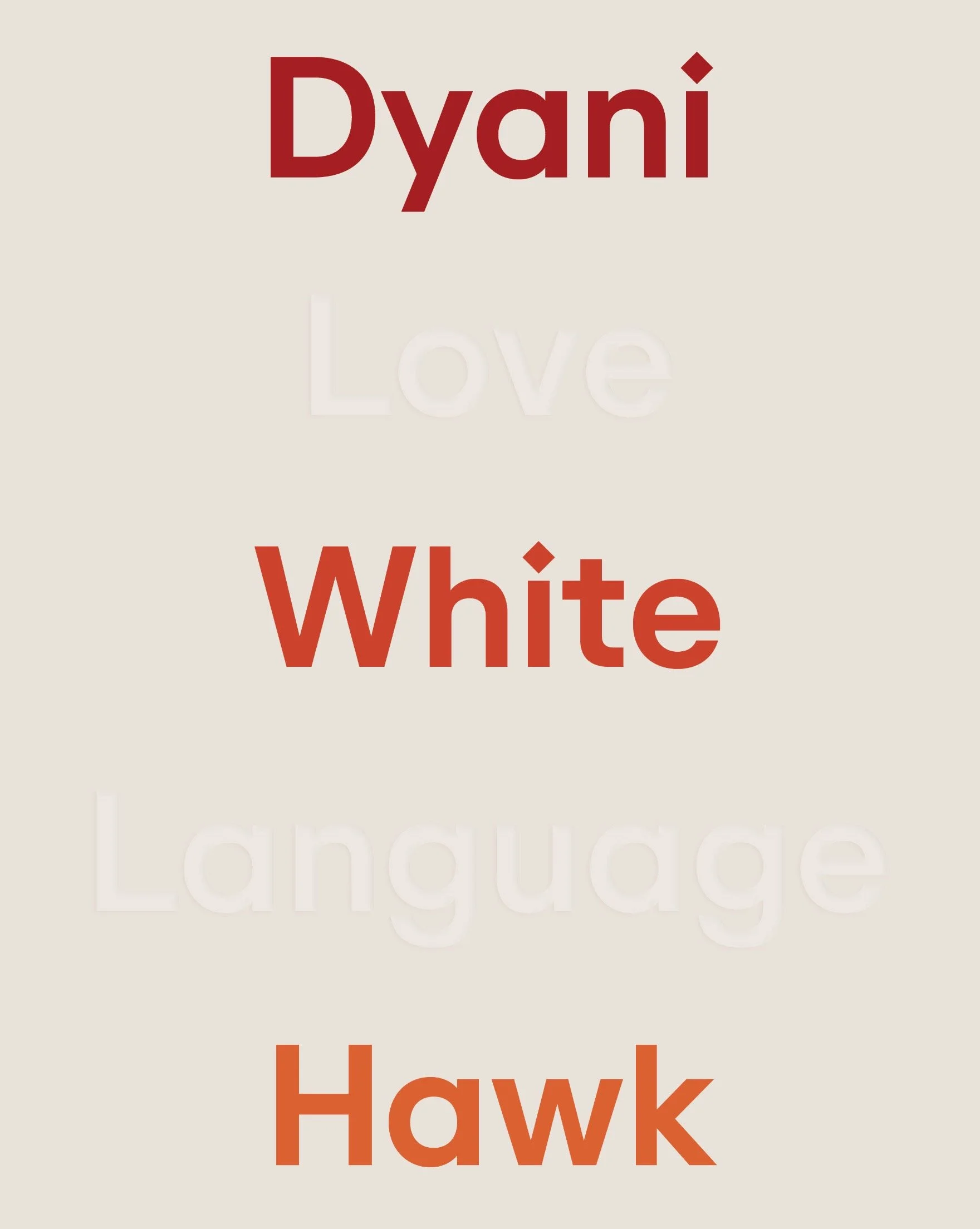 Dyani White Hawk: Love Language, 2025. Edited with text by Siri Engberg, Tarah Hogue. Text by Dyani White Hawk, mary v. bordeaux, Joyce Tsai, heather ahtone, Marie Watt, Christi Belcourt, Candice Hopkins, Layli Long Soldier. Courtesy of Walker Art Center.