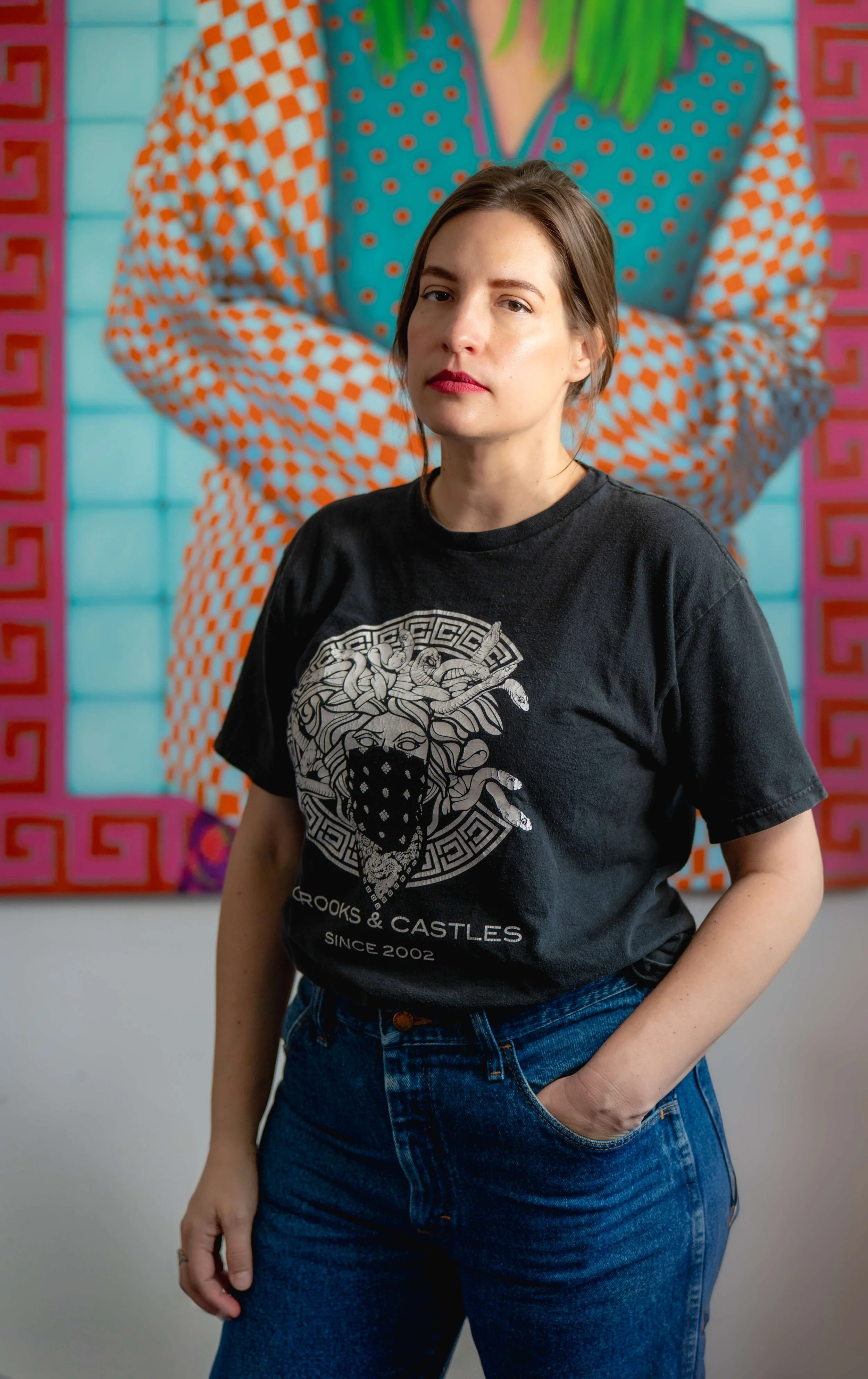 We are surrounded, if not exquisitely and horrifically overwhelmed, by a vast amount of visual data that we’re asked to interpret and then hold in our bodies. Whether I’m referencing a character or story or feeling, I’m trying to get at something about processing the current moment and our shared history. It’s wild, chaotic, and glorious. If we have the gift of sight, our lives—and my paintings—are about integrating this mess into something beautiful.